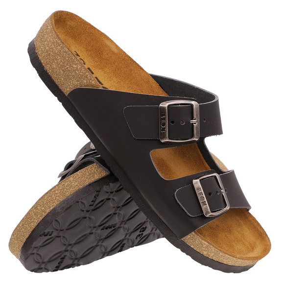 - LEON - klapki damskie casual, profilaktyczne, o charakterze rekreacyjnym, produkcji włoskiej. Wierzch: tworzywo skóropodobne. Podszewka: naturalna bawełna. Wkładka wewnętrzna: naturalna skóra. Spód: lekkie tworzywo PU.