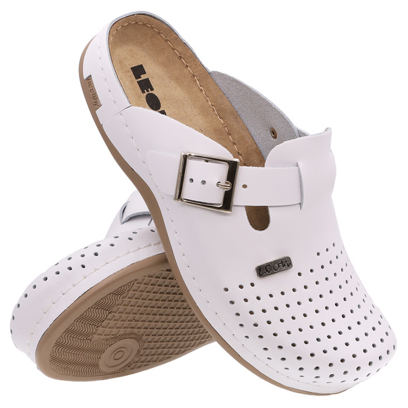 - LEON Klapki męskie profilaktyczne, zdrowotne produkcji polskiej o charakterze rekreacyjnym. Wierzch ze skóry naturalnej. Wkładka wewnętrzna z naturalnej skóry. Spód z lekkiego, elastycznego tworzywa PU.