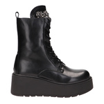 Botki zimowe damskie wysokie sznurowane z zamkiem na koturnie